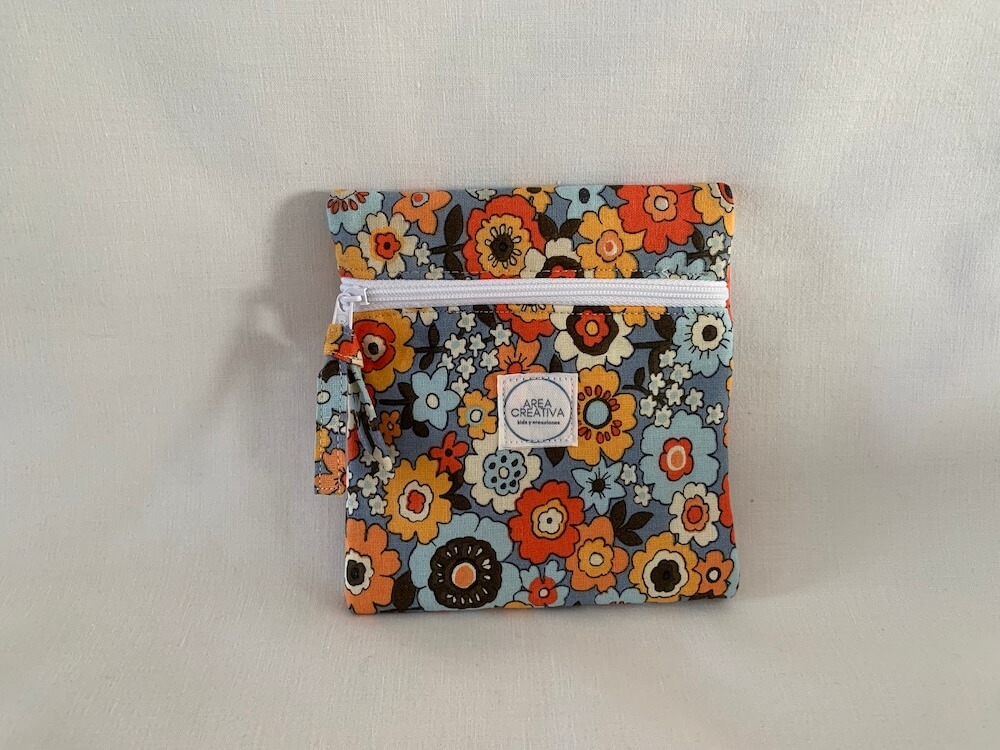 Esta bolsita cuadrada mide unos 14 cm de ancho y 14 cm de alto aproximadamente. Tiene una cremallera delantera que le da seguridad para guardar el dinero, las llaves o las coses más íntimas…Se puede comprarla a juego con otras piezas de nuestra colección. Consulta disponibilidad.
