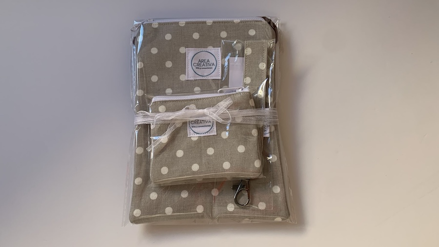 Hazte ya con tu conjunto 3 piezas de bolso para móvil tipo bandolera, monedero y llavero a juego en tejido lunares, a un precio imbatible