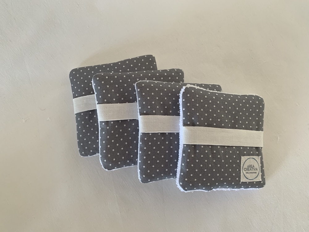 Desmaquilladores en pack de 4, en tejido lunares y gris