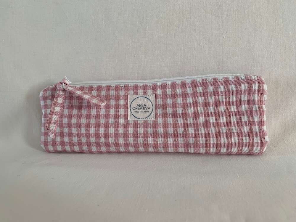 Esta pieza es perfecta para guardar lápiz y bolígrafo. Mide unos 23 cm de ancho y unos 8 cm de alto. Cierra con una cremallera superior que permite cerrar totalmente.