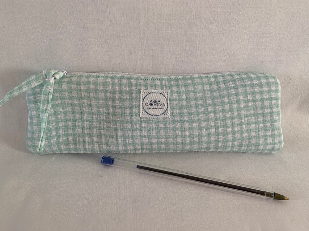 Estuche tejido cuadro vichy verde y blanco