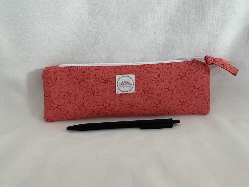 Esta pieza es perfecta para guardar lápiz y bolígrafo. Mide unos 23 cm de ancho y unos 8 cm de alto. Cierra con una cremallera superior que permite cerrar totalmente.