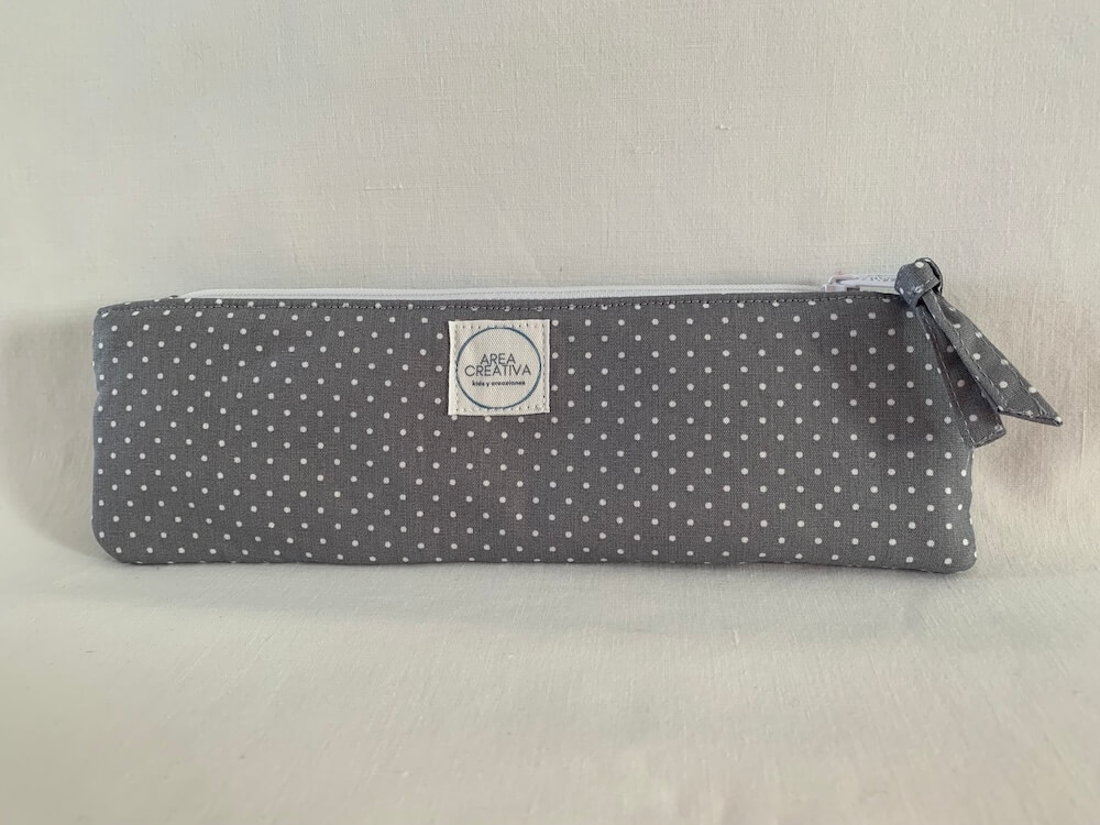 Estuche tejido gris y lunares blancos