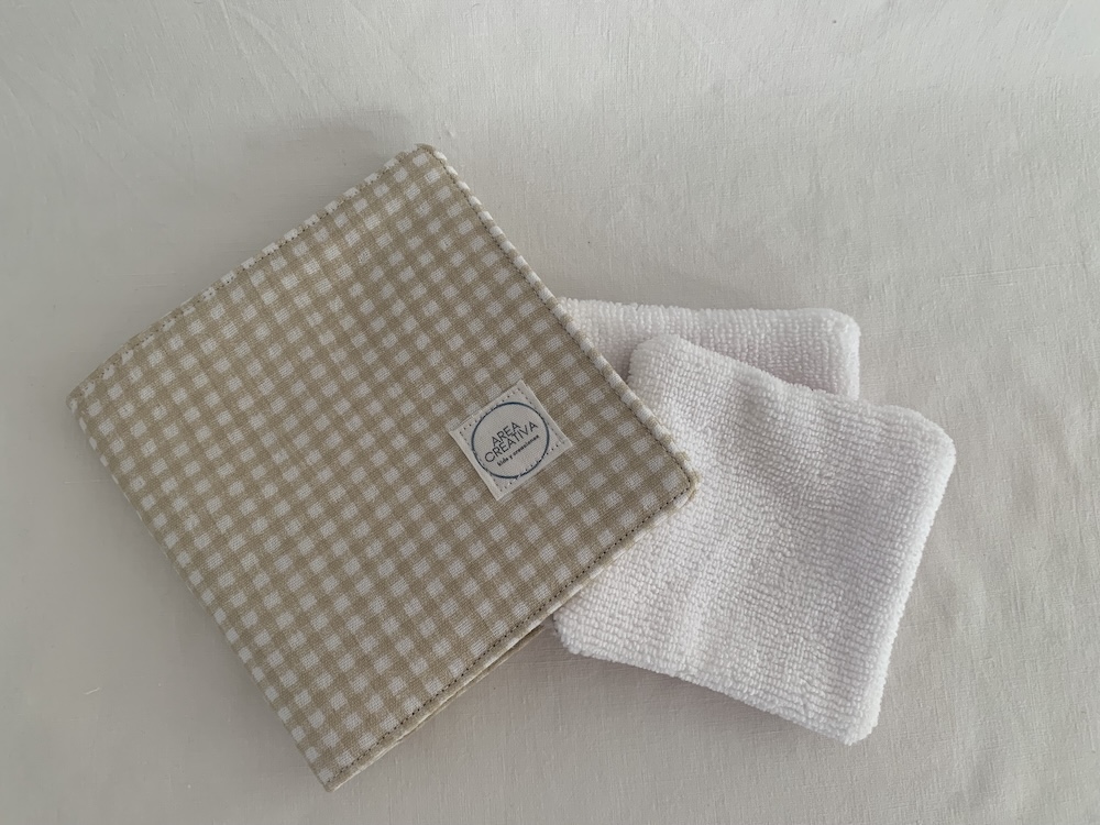 Estuche para desmaquilladores en tejido cuadro vichy mostaza