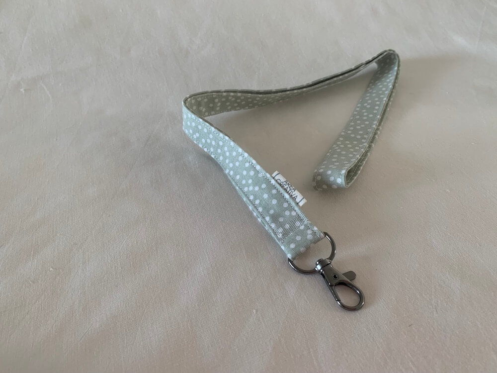 Se trata de un llavero con una tira de unos 50 cm aproximadamente, que puede colgarse en el cuello. Tiene un mosquetón en uno de los extremos para colgar las llaves.