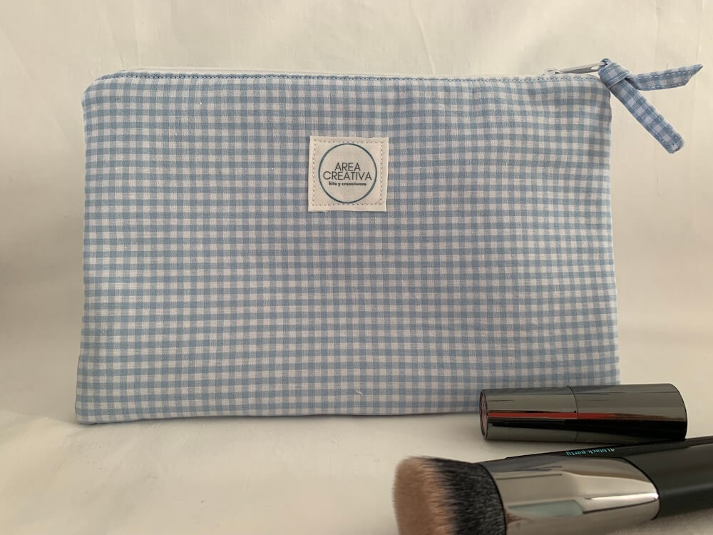 Bolsita neceser multifuncional en tejido cuadro vichy azul