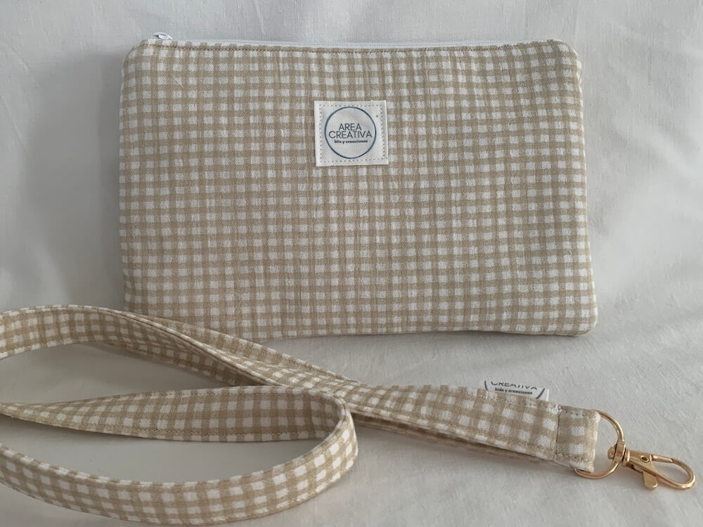Bolsita neceser multifuncional en tejido cuadro vichy mostaza