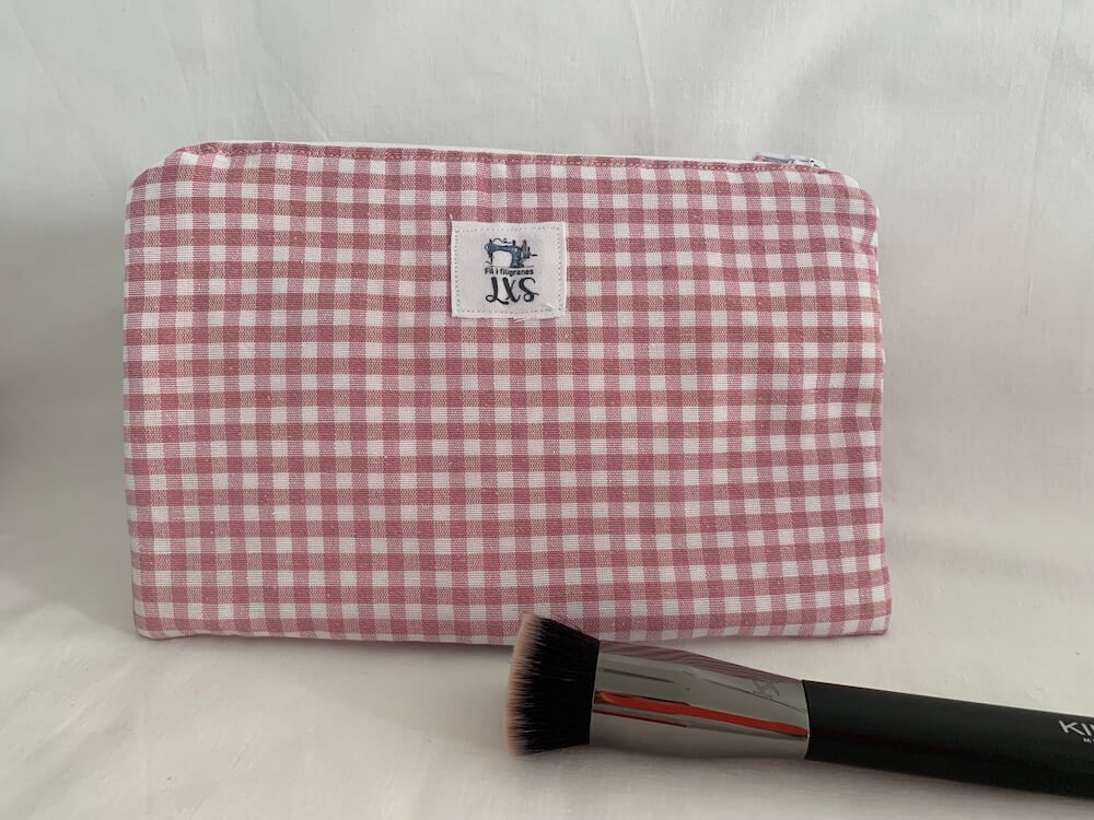 Bolsita neceser multifuncional en tejido cuadro vichy rosa