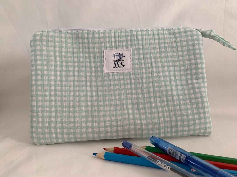 Bolsita neceser multifuncional en tejido cuadro vichy verde